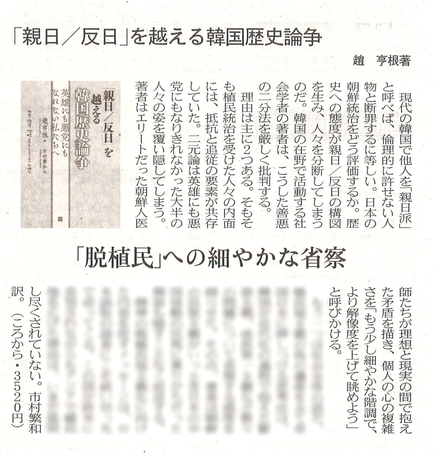 『「親日/反日」を越える韓国歴史論争 英雄にも悪党にもなれない私たちへ』(趙亨根著、市村繁和訳)が日本経済新聞(2026年3月14日)で書評されました。